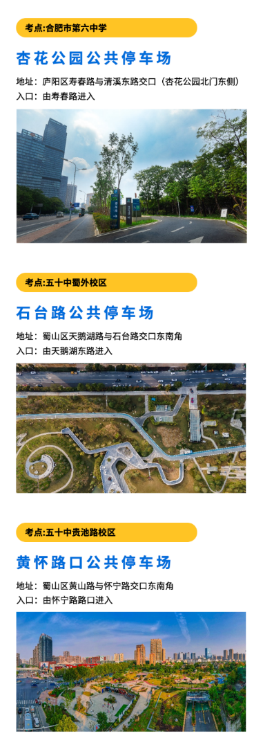 考试期间送考车辆凭2023年度中考准考证原件或者复印件,可全天停放在爱心免费路段及停车场。