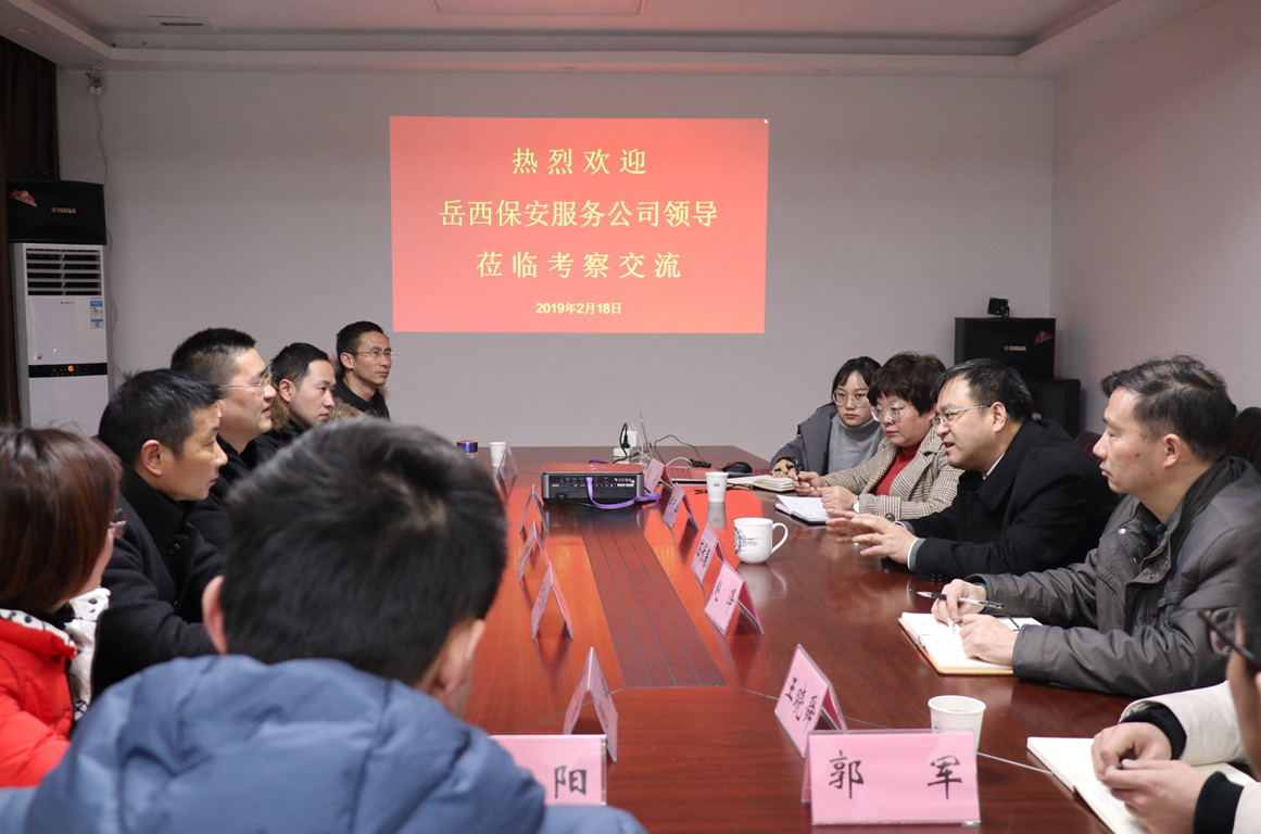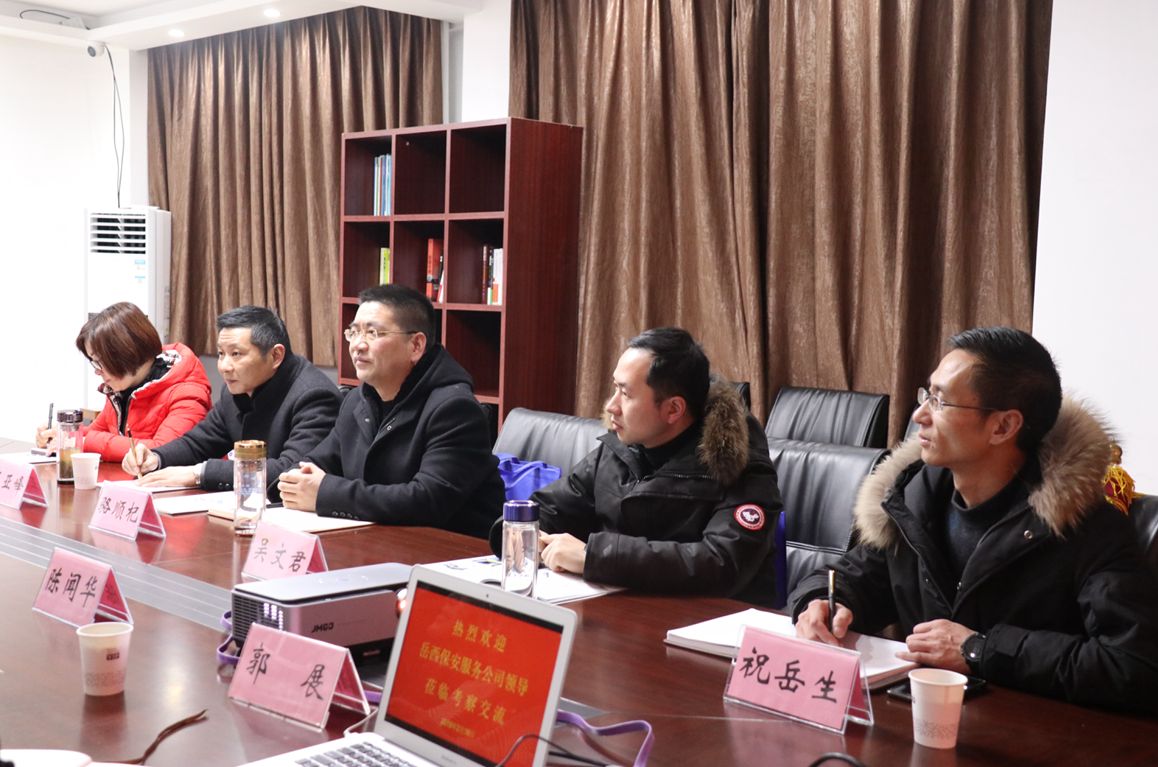 2月18日上午,岳西县保安服务公司工作人员一行到合肥城市泊车投资管理有限公司(以下简称“合肥城泊”)考察交流。合肥保安集团党委书记、董事长应长春,合肥城泊副总经理陈闻华、赵泽、郭展、王晓舜参加座谈。