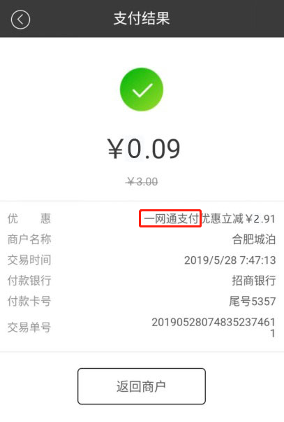 领券用户登录合肥停车APP,选择招行一网通支付跳转招商银行APP支付,即可享受5元立减和随机立减叠加优惠!