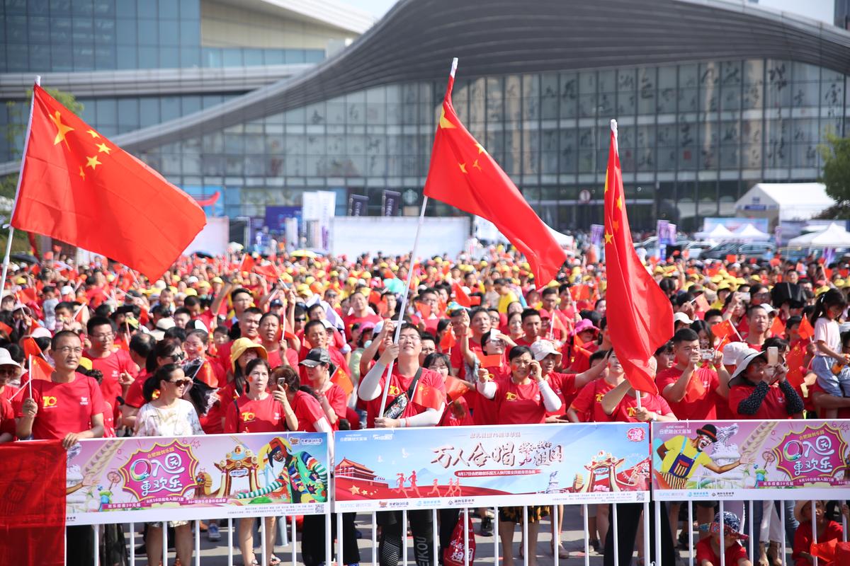 “我和我的祖国”万人红歌快闪在合肥脸谱广场盛大举办。现场身穿统一服装的活动参与者,齐聚广场同唱《我和我的祖国》,在悠扬的歌声中,唱响对祖国深深的祝福与热爱。