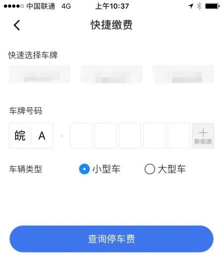2、点击“快捷缴费”,输入车牌号,即可查看进行中订单,一键结算驶离