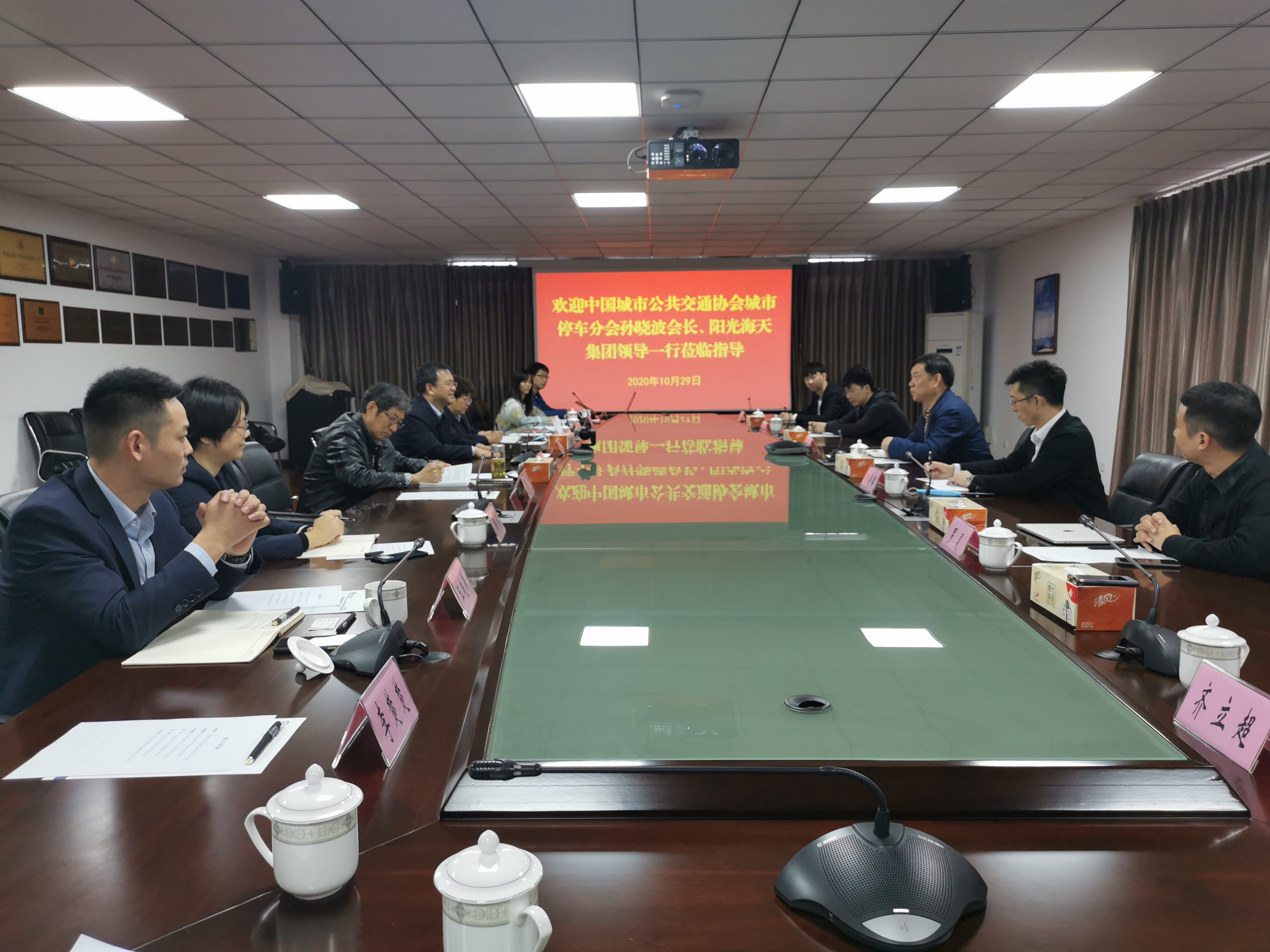 10月29日,中国城市公共交通协会城市停车分会孙晓波会长、阳光海天集团领导一行莅临安徽省停车行业协会、合肥城市泊车投资管理有限公司(以下简称“合肥城泊”)考察交流。阳光海天停车产业集团运营总经理赵海潞,合肥保安集团党委书记、董事长应长春,合肥城泊领导班子及相关负责人参加会议。