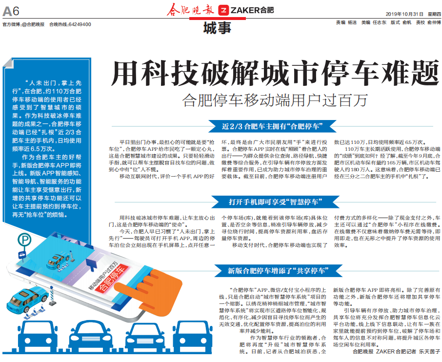 用科技破解城市停车难题,合肥停车移动端用户过百万
