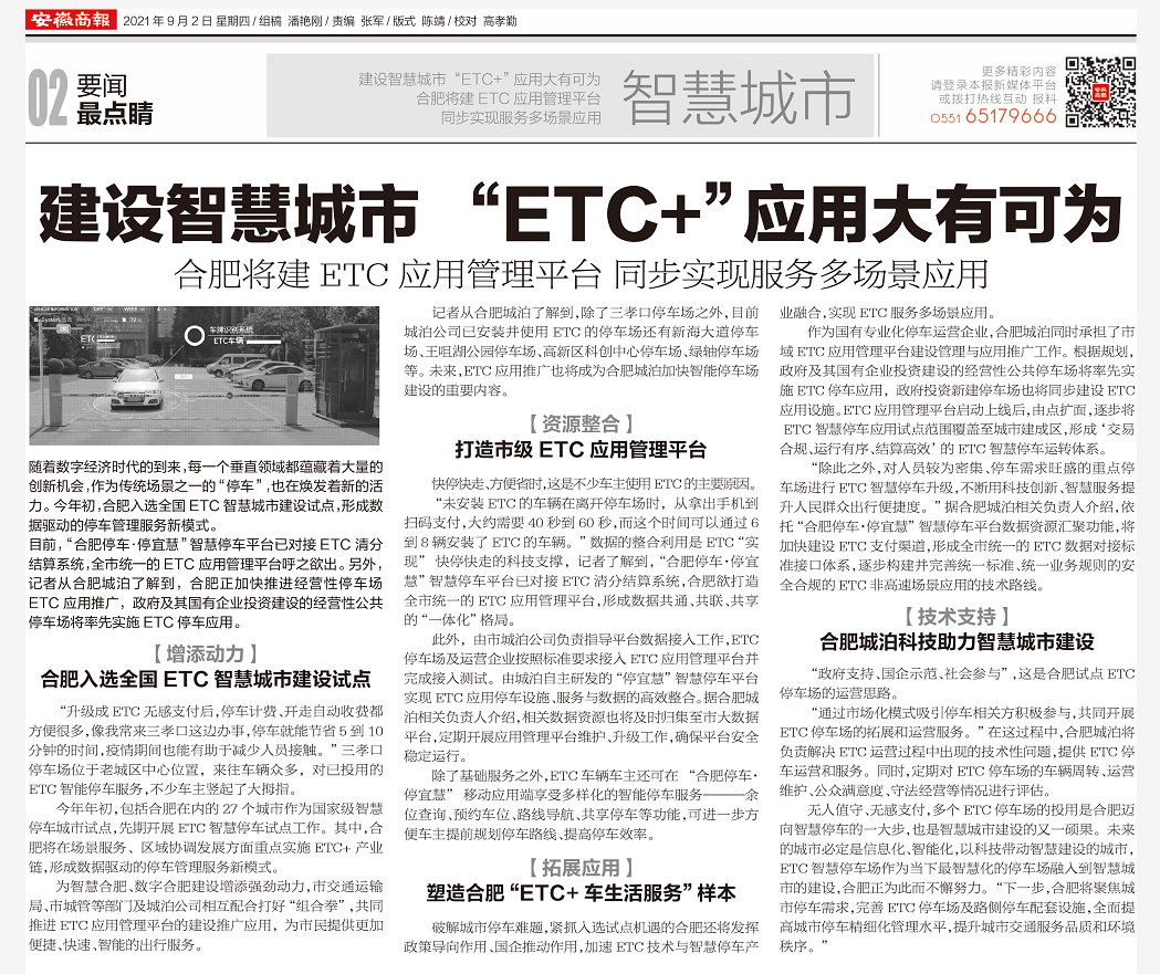 建设智慧城市 “ETC+”应用大有可为 合肥将建ETC应用管理平台 同步实现服务多场景应用