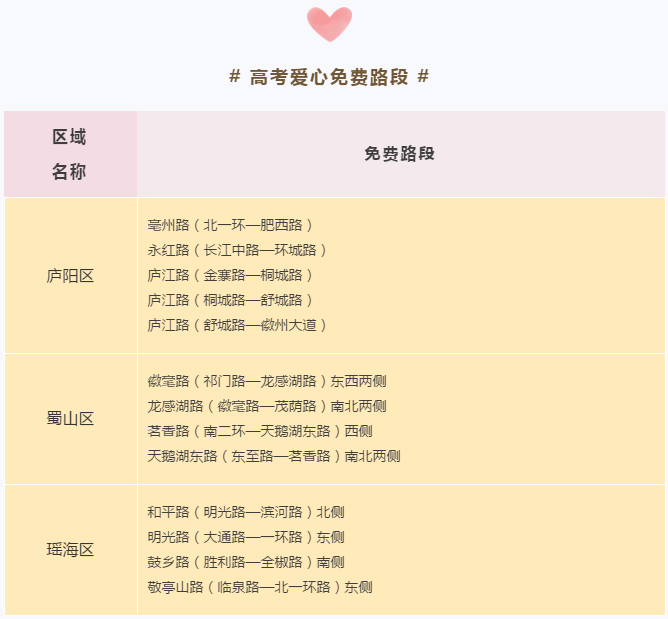 考试当天(7月7日—8日),参加高考的考生家长可凭借考生准考证在上述路段免费停放车辆。合肥城泊泊管员也将积极履行“文明停车劝导员”职责,引导车辆有序停放,同时疏导社会车辆停放至其他路段,释放更多车位服务送考车辆。