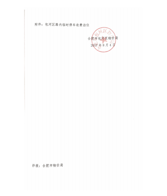 关于包河区新增道路临时停车泊位收费等级的批复 合包价[2017]1号