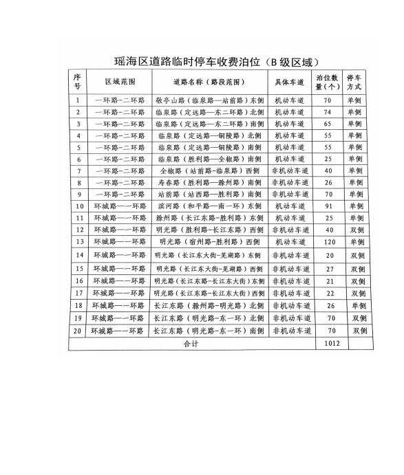 关于审核瑶海区新增道路临时停车泊位收费等级的复函 合瑶价函[2017]2号