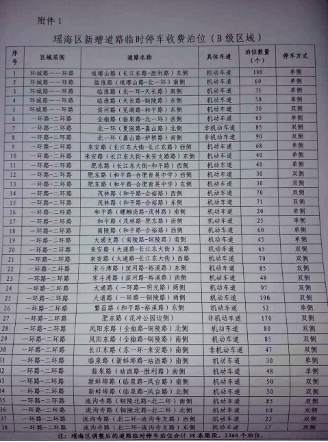关于审核瑶海区新增道路临时停车泊位收费等级的复函 合瑶价函[2017]2号