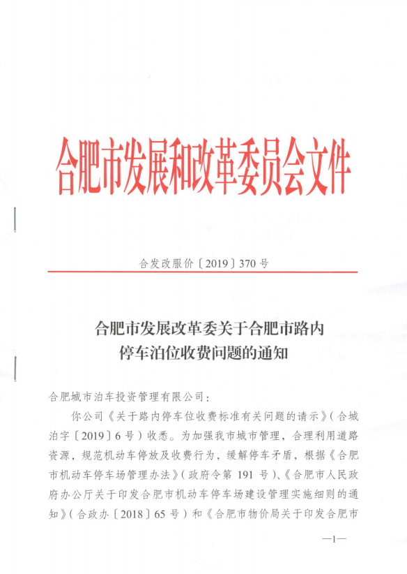 合肥市发展和改革委员会文件 合发改服价[2019] 370号