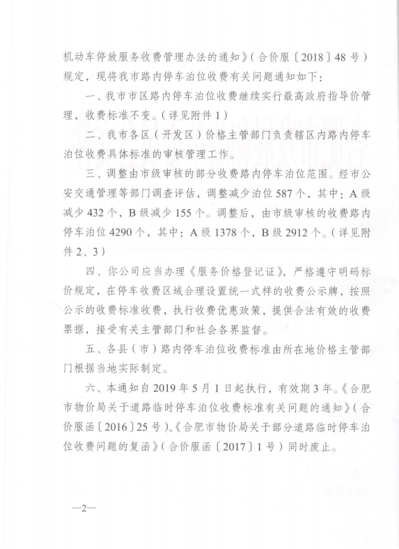 关于审核蜀山区新增道路临时停车泊位收费等级的复函 合蜀价函[2017]8号