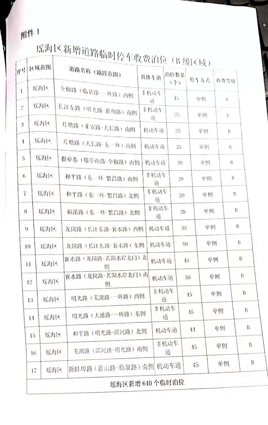 关于审核调整瑶海区道路临时停车泊位收费等级的复函