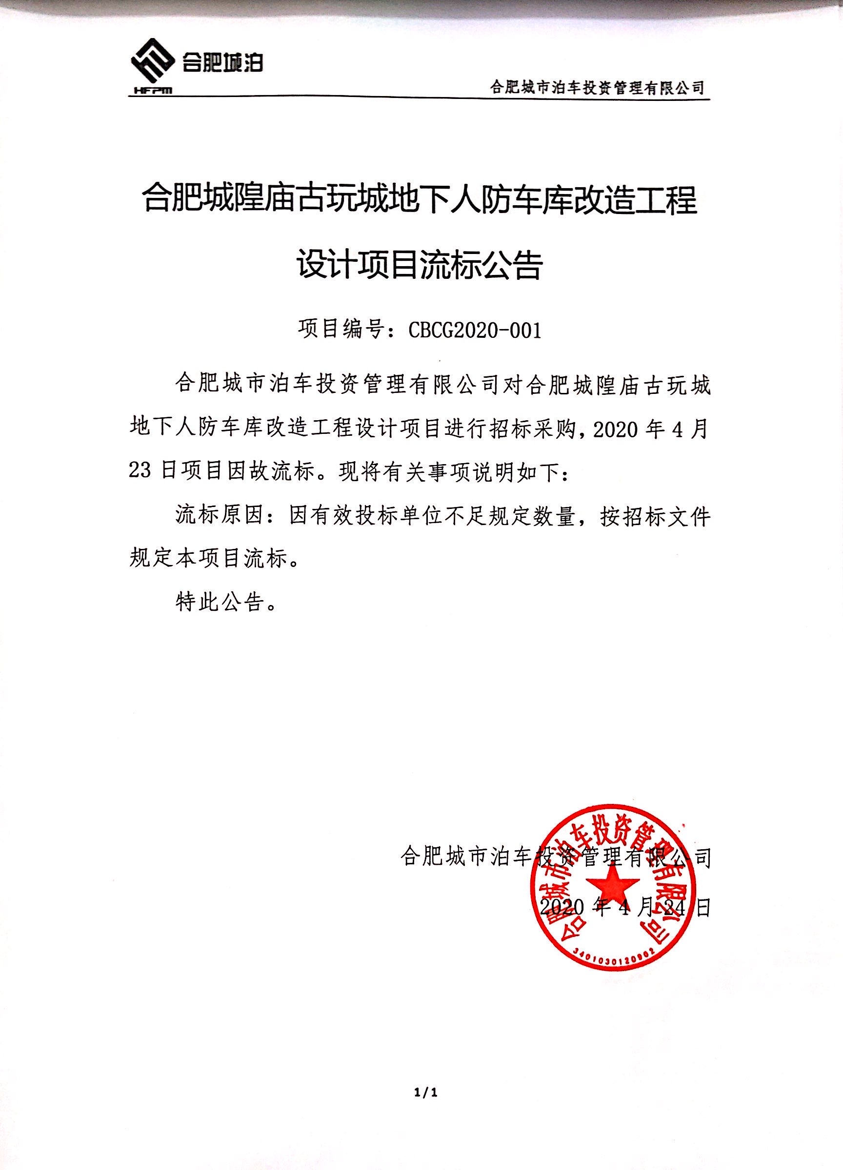 合肥城隍庙古玩城地下人防车库改造工程设计项目流标公告