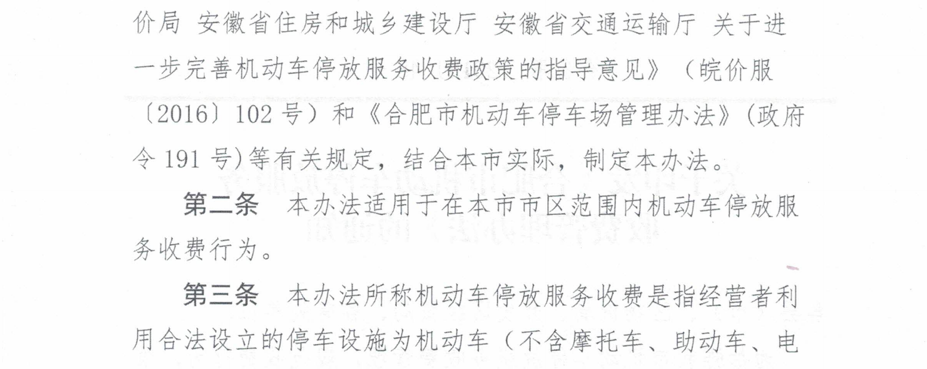 合肥市机动车停放服务收费管理办法(合服价【2018】48号)