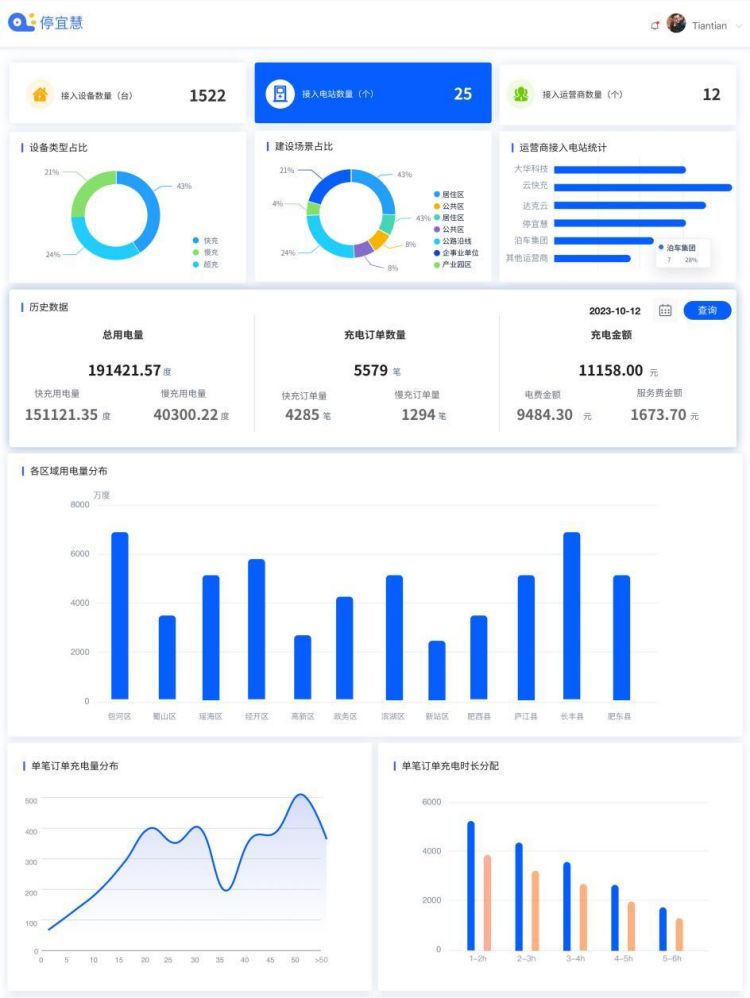 停充一体化监管。通过构建“互联网+监管+服务”模式,协助政府打造城市级“停充”一张网管理平台,实现停车充电数据的实时汇聚及各类设备设施的实时监管,通过多维度分析和展示为行业主管部门制定更加有针对性的政策提供依据,提升静态交通高效管控能力和城市民生工程服务能力。