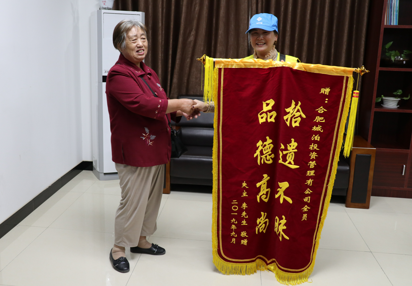 “非常感谢你,幸好找回来了,可把我们急坏了。”失主李先生的母亲满怀感激之情来到合肥城市泊车投资管理有限公司(以下简称:合肥城泊)的办公楼,送来了一面印有“品德高尚,拾遗不昧”的鲜红锦旗,以感谢合肥城泊泊管员刘秀梅的拾遗不昧。