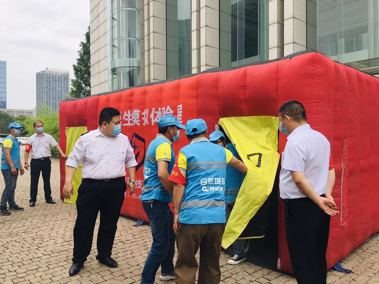 演练过程中,除了常规化普及消防知识外,还开展了“实战”体验,大家进入消防逃生模拟体验屋模拟火灾发生,逃生人员用湿毛巾遮挡口鼻,身体保持低姿势,按照“体验屋”内的安全出口指示牌指示方向,快速撤离到“安全出口”。