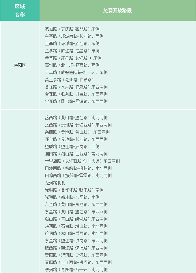 同时,我公司拟于2020年10月1日-10月8日,部分路内泊位免费对外开放。现将八天免费开放路段公布如下: