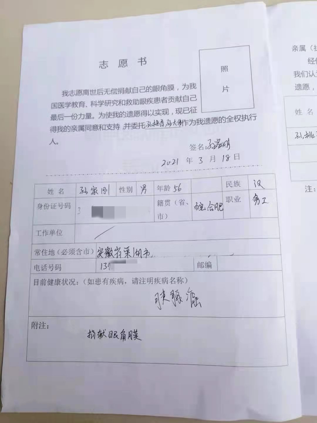 孙家刚的妻子孙桃香说:“我太了解他了,平时就很热心公益,生命终止也想为他人留下光明。他其实没有走,他在用另外一种方式看世界。”