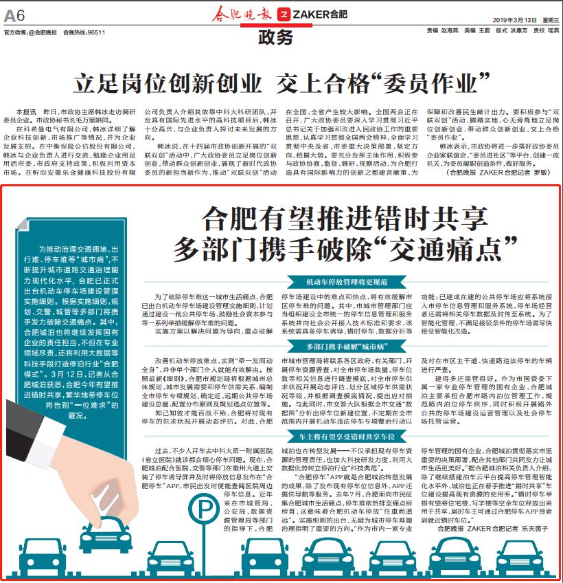 合肥有望推进错时共享多部门携手破除“交通痛点”