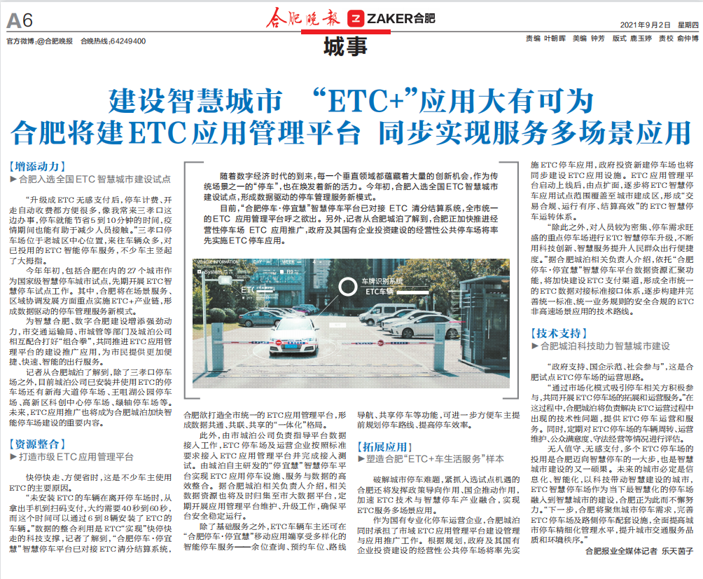 建设智慧城市 “ETC+”应用大有可为 合肥将建ETC应用管理平台 同步实现服务多场景应用