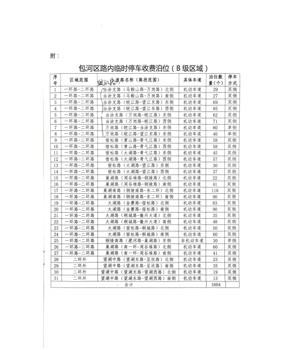 关于包河区新增道路临时停车泊位收费等级的批复 合包价[2017]1号