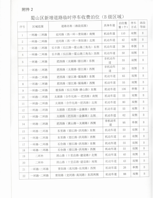 关于审核蜀山区新增道路临时停车泊位收费等级的复函 合蜀价函[2017]3号