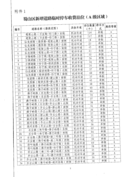 关于审核蜀山区新增道路临时停车泊位收费等级的复函 合蜀价函[2017]7号