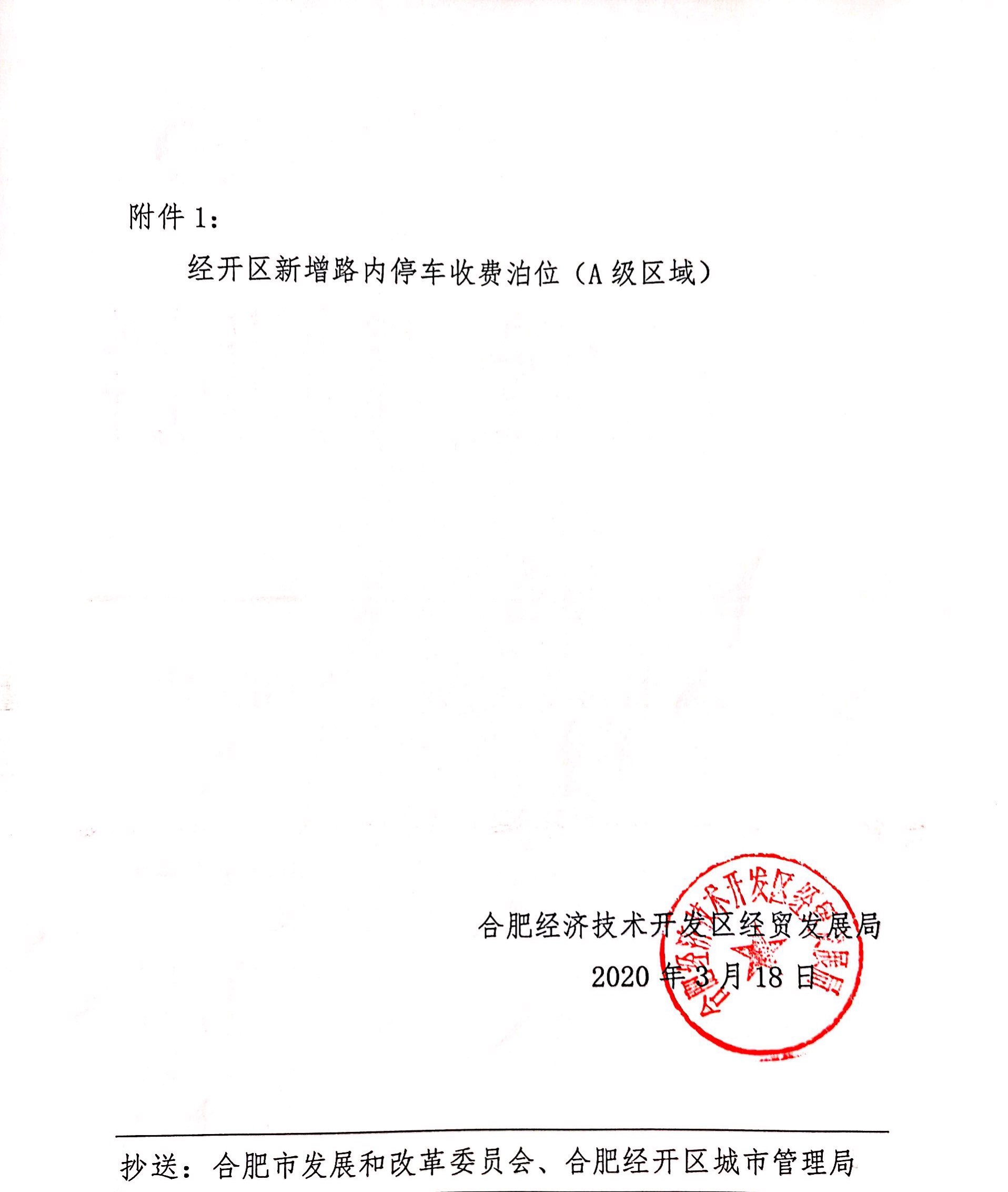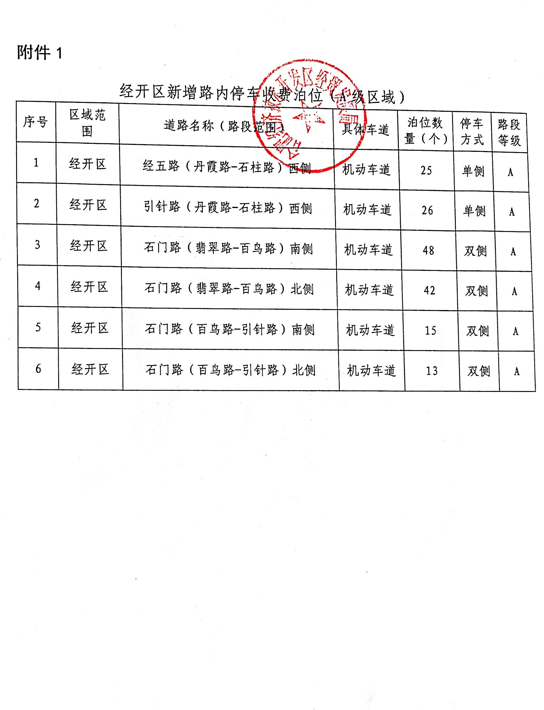 关于审核经开区新增路内临时停车泊位收费等级的复函
