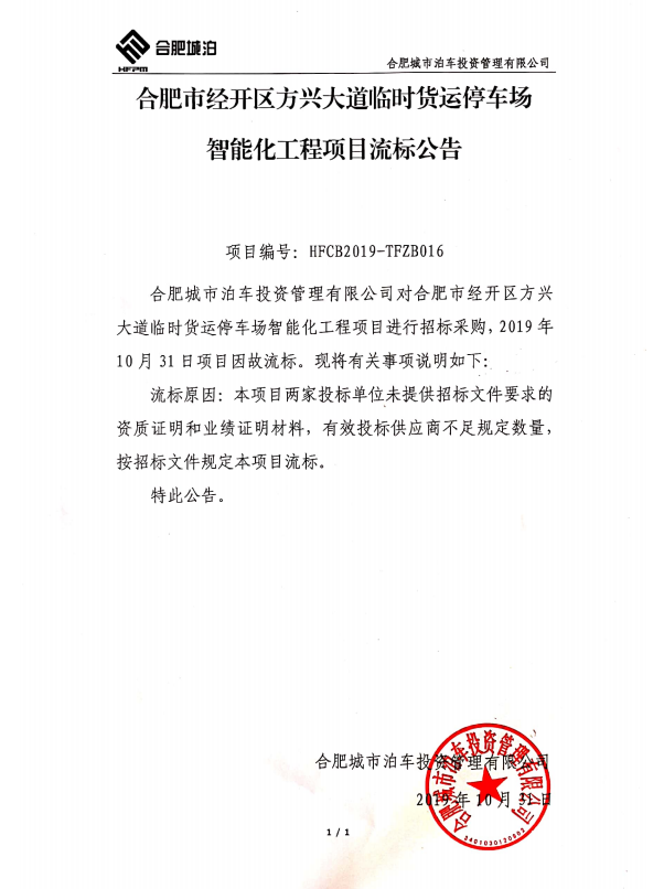 合肥市经开区方兴大道临时货运停车场智能化工程项目流标公告