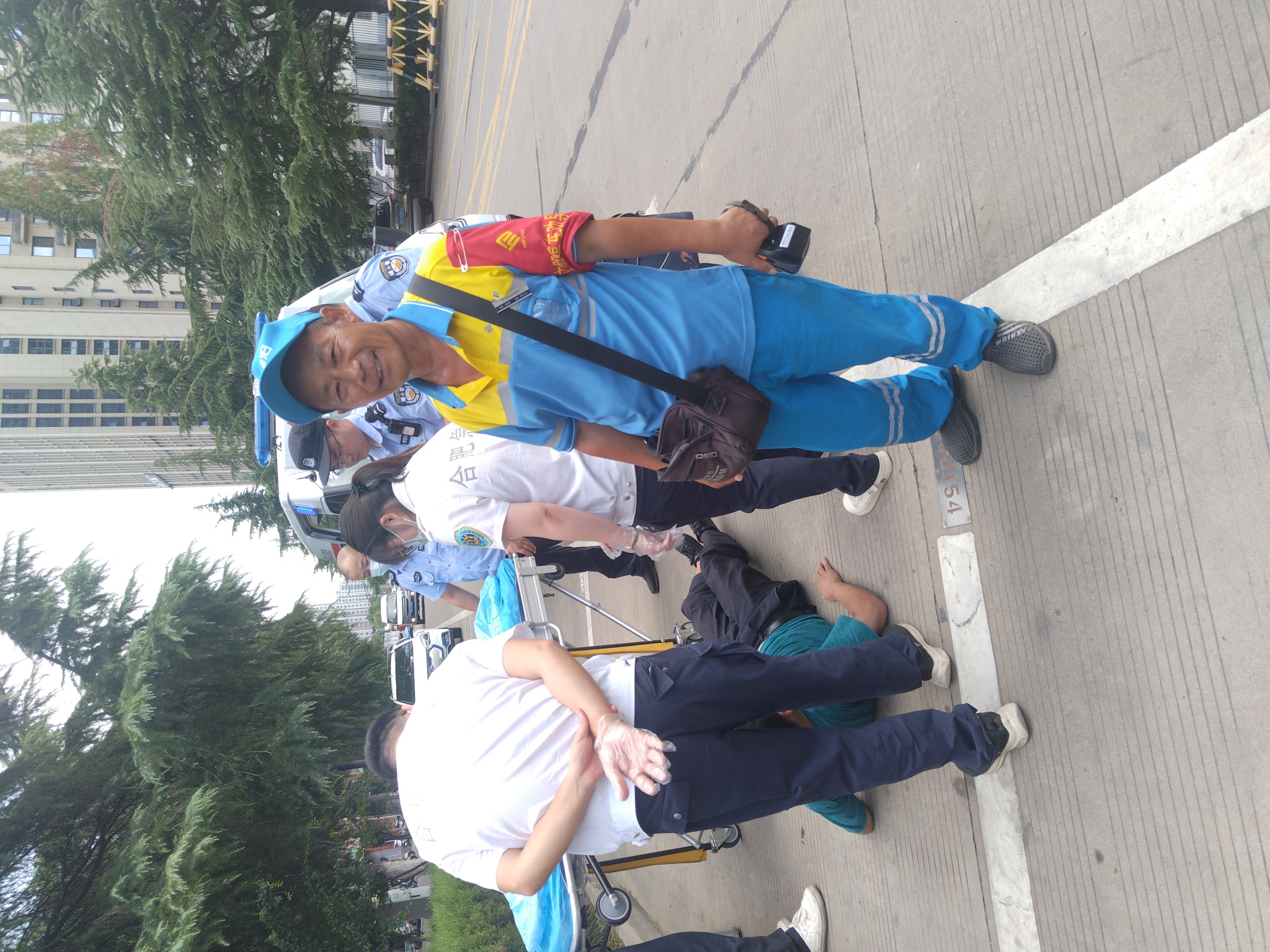 在警员赶到现场前,沈召忠一刻不敢放松的在醉汉身边守护,一直等到警方到达现场,后警方联系120救护人员将该男子送往最近的医院进行治疗。