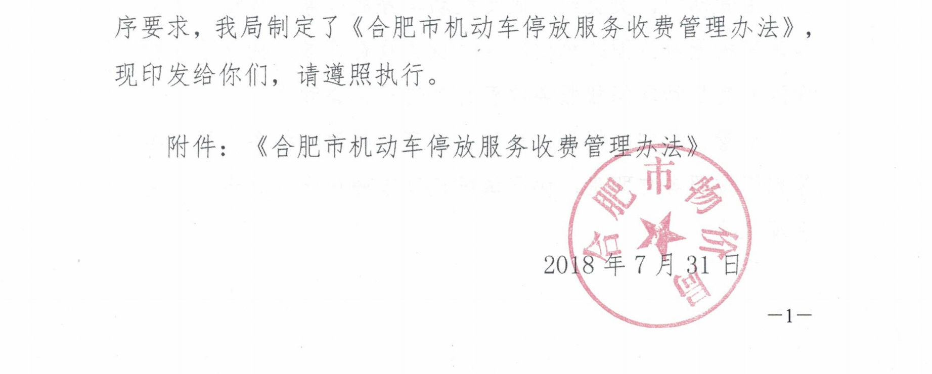 合肥市机动车停放服务收费管理办法(合服价【2018】48号)